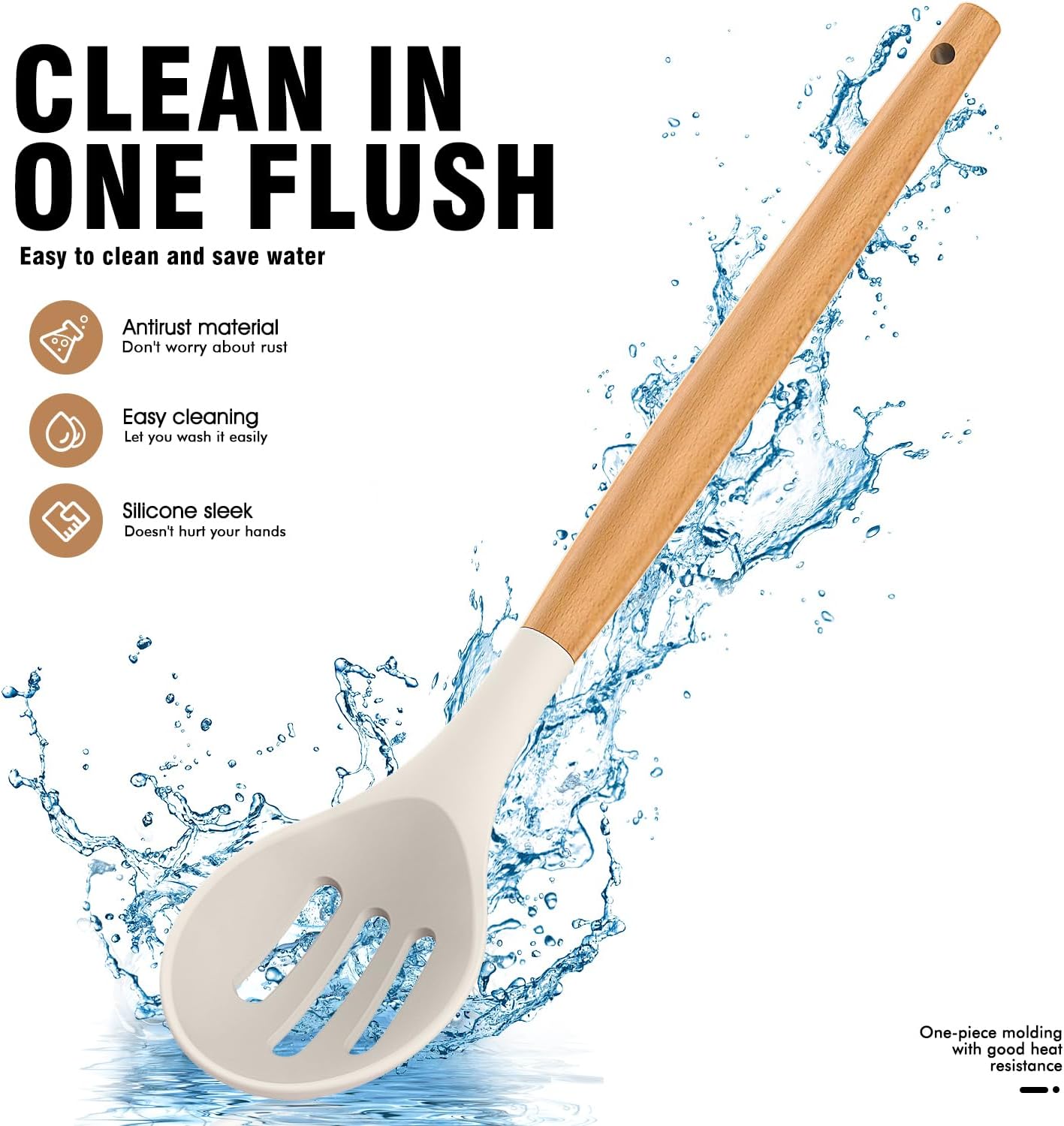 - Material: Food-grade silicone + natural wood handles
